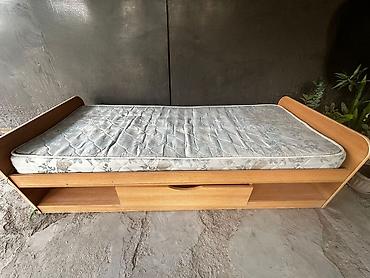 Односпальная кровать с матрасом б/у в отличном состоянии - Размер спального места: 100*200 см (узкая односпальная). - Основание: прочная рамка из темного ЛДСП/МДФ, лаконичный современный дизайн, в...