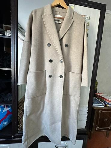 - Модель: двубортное пальто прямого кроя с пониженной линией плеча