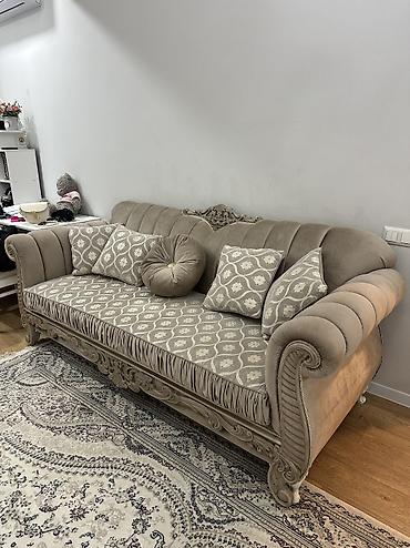 Продаю один раскладной диван, 3 подушки в комплекте Ширина 214 см Глубина 85 см + 70 см в разложенном виде Высота 75 см Самовывоз(ж/м Арча-Бешик), либо доставка по адресу через Яндекс(с предоплат...