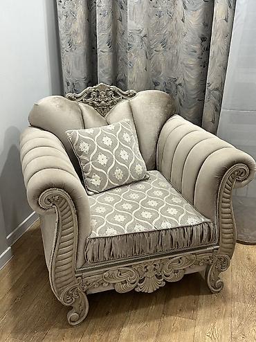 Продается диван с двумя креслами Деревянный каркас Раскладывается в хорошем состоянии Цена 4000 Бишкек самовывоз