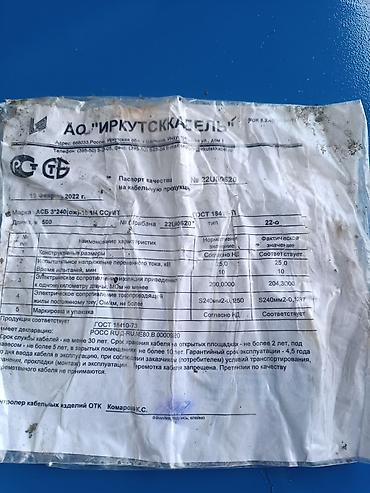 Продаю кабель АСБ 3*240(ож)-10 1/4ССуИТ. Длина 500 метр в каждом барабане! В наличии 3 барабана 1500 метр. Цена ниже рыночных 1700 сом за метр!