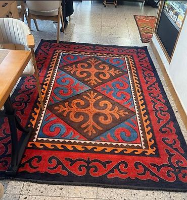 Ковер с восточным орнаментом Ковер размер 3/2.5 м цена по каждый штуке 4000 сом 2 шт в комплекте продаем - Тип: напольный ковер - Форма: прямоугольный - Цвета: бордовый и бежевый (центральное поле...