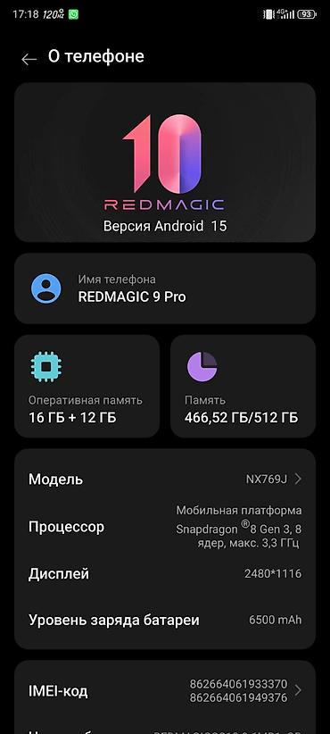 Red magic 9 pro 16 GB ram. 512 GB rom. хорошим состоянии. косметический 4 из 5 баллов. 55000 сом.