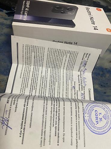 - Упаковка: фирменная коробка Redmi Note 14 с полной маркировкой, документация/гарантийный талон на фото