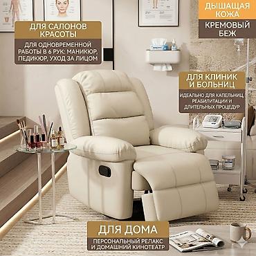 ПРОДАЮ Кресло-реклайнер, бежевое Раскидывается на 180, идеально подходит для наращивания ресниц и услуг в 4/6 рук Цена окончательная, в подарок отдам поддон