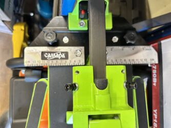 - Упоры с разметкой: шкалы в сантиметрах и дюймах, регулируемые угловые линейки для прямых и диагональных резов.