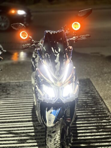 Скутер/максискутер с яркой LED-оптикой и дополнительными световыми элементами.