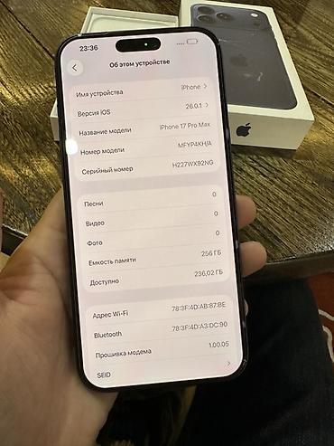IPhone 17 Pro, Б/у, 256 ГБ, Синий, Зарядное устройство, 100 %