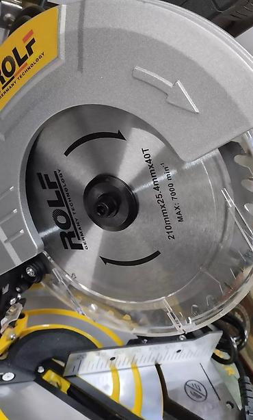 Торцовочная пила ROLF с отрезным диском 210 мм x 25.4 мм x 44T, разработанная по немецкой технологии. Инструмент имеет защитный кожух для безопасной работы и максимальную скорость вращения до 7000 об/мин. Подходит для точных распилов древесины и других материалов.