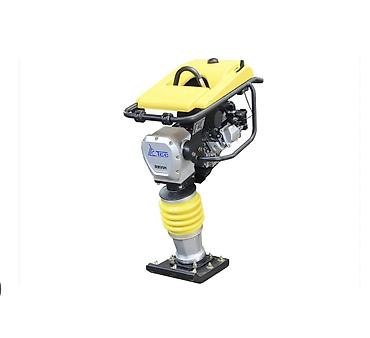Вибротрамбовка оснащена бензиновым двигателем с маркировкой "170G", что указывает на его мощность и надежность. Корпус выполнен из прочного металла серого цвета, а амортизирующая гофра ярко-желтого цвета обеспечивает эффективное поглощение вибраций. Удобная металлическая рама черного цвета служит для защиты двигателя и упрощает транспортировку устройства. Основание трамбовки имеет квадратную форму, обеспечивая устойчивость и равномерное уплотнение поверхности. Идеально подходит для уплотнения грунта, асфальта и других материалов на строительных площадках, при укладке тротуарной плитки или проведении ландшафтных работ.