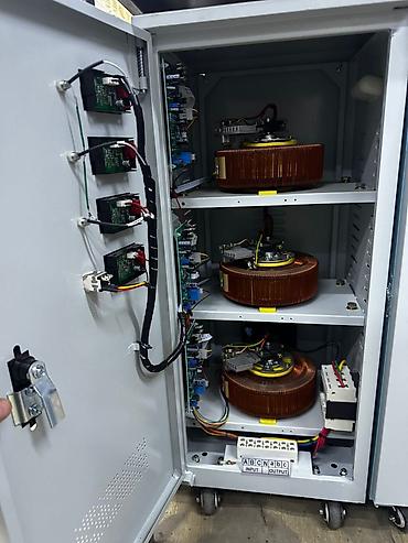 - Стабилизация трёхфазного напряжения 380 В для промышленного и коммерческого оборудования, компрессоров, насосов, ЧПУ, серверных, систем освещения и т. п.