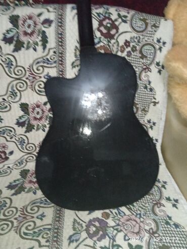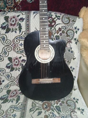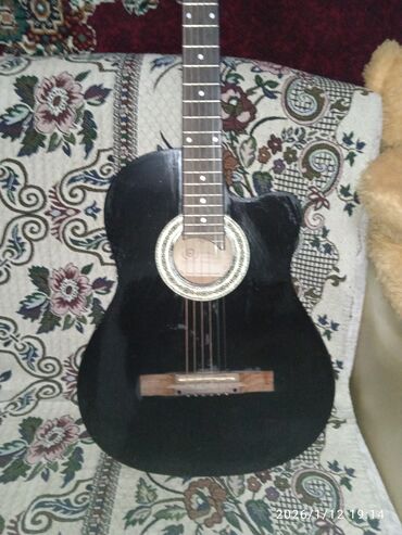 Акустическая гитара, черный глянец, корпус с вырезом (cutaway) для удобного доступа к верхним ладам. Классическая круглая розетка с орнаментом, накладка грифа темного дерева с точечными метками, 6 струн. Деревянный бридж с пластиковым/костяным седлом, анкерный гриф. Подойдет для обучения, аккомпанемента и игры медиатором или пальцами. Универсальный строй EADGBE, стандартная мензура; комфортный профиль грифа. Звук ровный, с акцентом на средние частоты; корпус выдает достаточную громкость для домашней практики и камерных посиделок. Цвет: черный. Комплектация на фото. Дата на снимках: 2026/01/12.