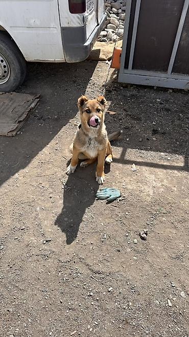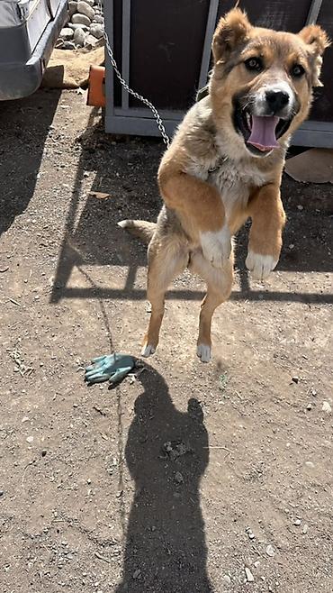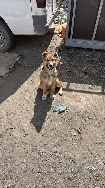- Привык к цепи/поводку, быстро успокаивается, знает базовые команды «сидеть» (по фото видно посадку и контакт).