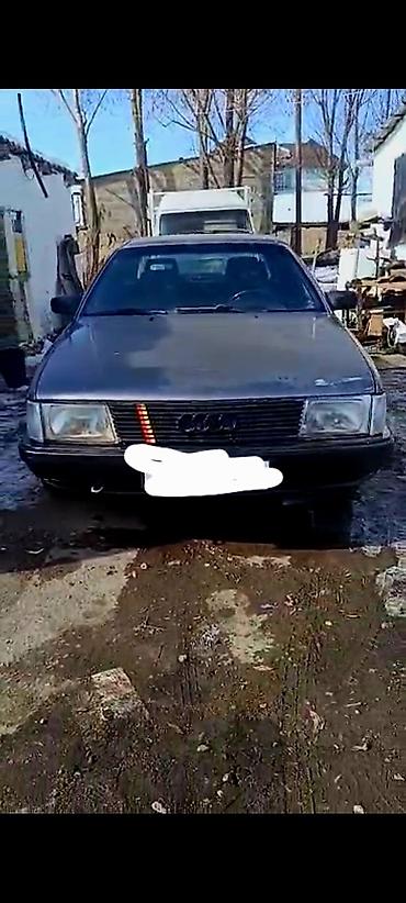 Audi 100 C3 седан, левый руль. Основные особенности: - Кузов: серый цвет, 4 двери, задний бампер с фаркопом, заводские шильдики Audi 100 C3. Лобовое с полосой-наклейкой Audi. - Оптика: прямоуголь...