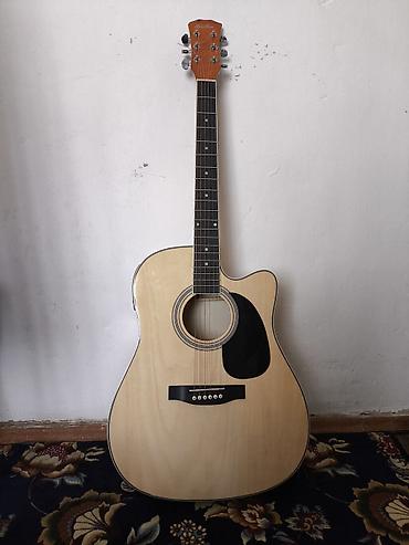 Гитара Электроакустика 41- размер дредноут.Кичине үстүндө ушиб бар.Унуно таасир этпейт Б/у.Комплект чехол,шнур анкер учун ключ