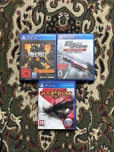 Все диски в фирменных синих боксах PS4. Отличный набор: экшен‑слешер, аркадные гонки с полным пакетом дополнений и шутер с бонусным контентом.