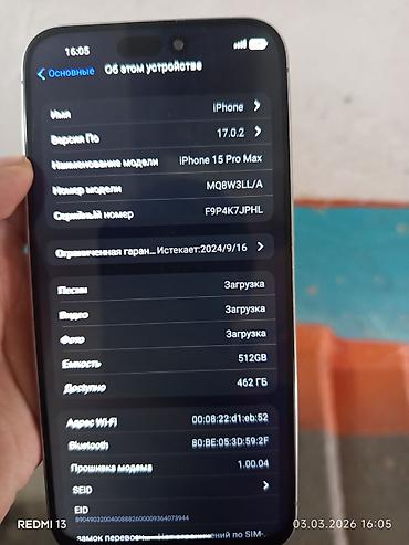 - Память: 512 GB (доступно ~462 ГБ на фото)