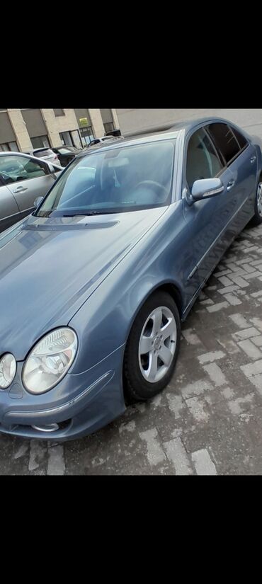 Mercedes-Benz E‑Class (W211) седан, цвет серо‑голубой металлик.