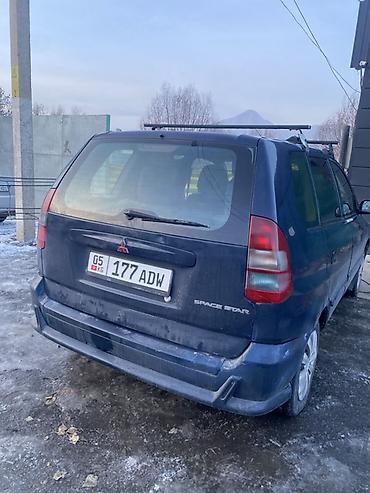 Практичный городской автомобиль с хорошей вместимостью и возможностью перевозки дополнительного груза на крыше. Номера KG. Модель «Space Star» указана на крышке багажника.