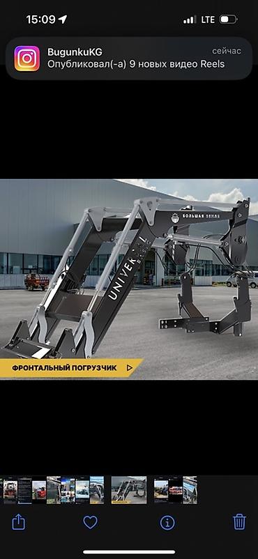 Подходит для погрузки сыпучих материалов, паллет, навоза, сена, строительных и коммунальных работ. Бренд: Большая Земля. Серия: Universal Basic. Тип: фронтальный навесной погрузчик. Цвет: темно‑серый/черный.
