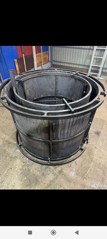 Металлические цилиндрические формы (опалубка) для изготовления круглых железобетонных колодезных колец/резервуаров. Характеристики: - Конструкция: разборные стальные цилиндры с коническими крышкам...