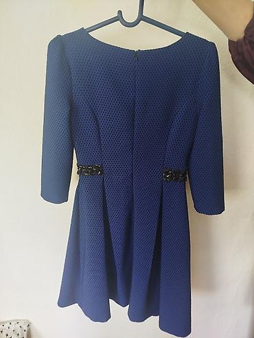 Платье POLIN, синее с мелким геометрическим узором.