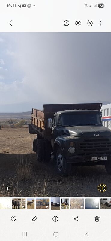 Бортовой грузовик ЗиЛ с самосвальным кузовом. Характеристики по фото: - Классический кабover ЗиЛ, колёсная формула 4x2. - Стальной бортовой/самосвальный кузов повышенной высоты с надставными борта...
