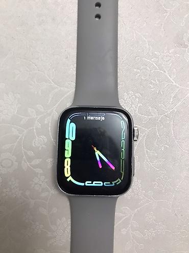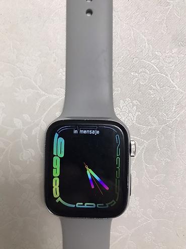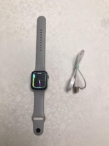 Смарт-часы с прямоугольным дисплеем и серым силиконовым ремешком