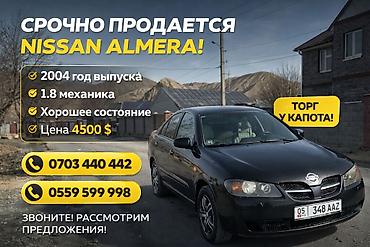 Продаю Ниссан Альмера 2003год, обьем 1.8 Механика левый руль цвет синий в хорошем состоянии! Цена300000сом! окончательно тел: