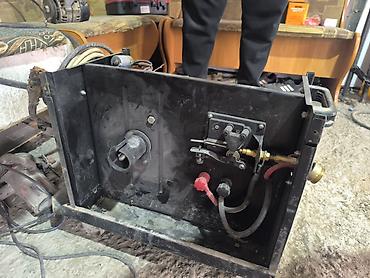 В комплекте на фото: сам аппарат корпусного исполнения. Дополнительные принадлежности (горелка, кабели, баллон, редуктор, катушка проволоки) на снимках отсутствуют. рабочий только оташли провода надо найти место проводов и присоединить