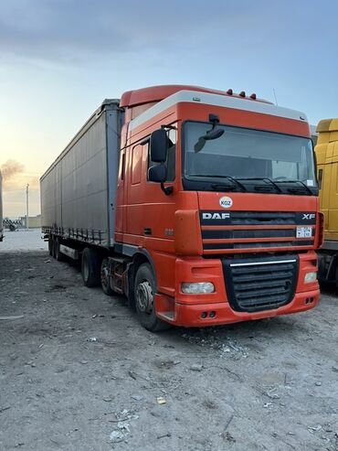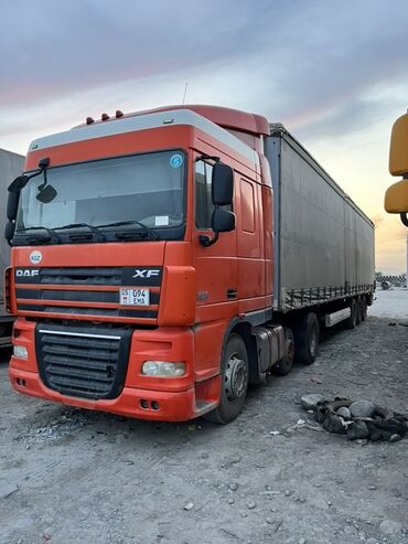 На фото видно использование как с полуприцепом-тентом, так и в составе без прицепа. Надежная серия DAF XF, подходящая для междугородних и международных перевозок: комфортная кабина, экономичный дизель, высокая тяга и удобное обслуживание.прицеп 2004г.обш тара 14200
