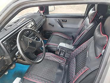 Салон: передние сиденья с чехлами спортивного стиля (черный с красной прострочкой), дополнительные подголовники, на полу коврики. Рулевое колесо VW, приборная панель аналоговая. Центральная консоль с аудиосистемой/магнитолой, ручные стеклоподъемники, зеркала с ручной регулировкой. На панели установлена защитная накидка.