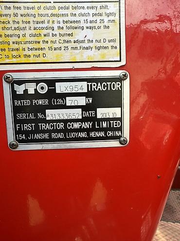 Трактор YTO LX954 - Мощность: 70 кВт (паспортная, на шильде) -