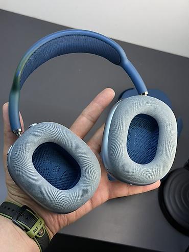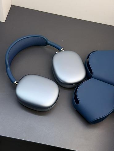 AirPods Max Беспроводные накладные наушники премиум‑класса в синем цвете с алюминиевыми амбушюрами и фирменным мягким оголовьем-сеткой. В комплекте — магнитный чехол Smart Case в тон.