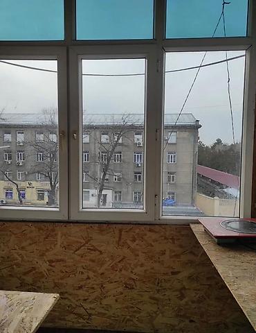 - Окна: пластиковые стеклопакеты, широкий подоконник; вид на городскую улицу.