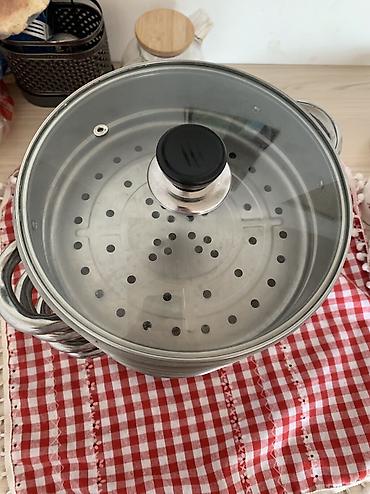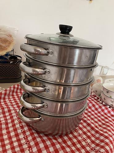 - Комплект: 1 нижняя кастрюля для воды + 4 паровые яруса с отверстиями + стеклянная крышка с пароотводом и термостойкой ручкой.