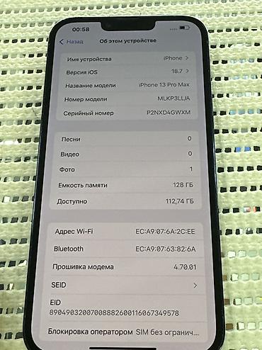 IPhone 13 Pro Max, Б/у, 128 ГБ, Белый, 85 %