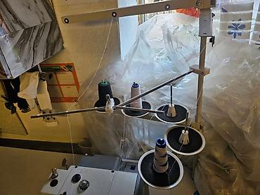 Промышленный оверлок на рабочем столе с подставкой для нитей. - Тип: 5-ниточный оверлок (видны 5 катушкодержателей), дифференциальная подача. - Комплектация: стационарный стол с линейкой-разметкой...