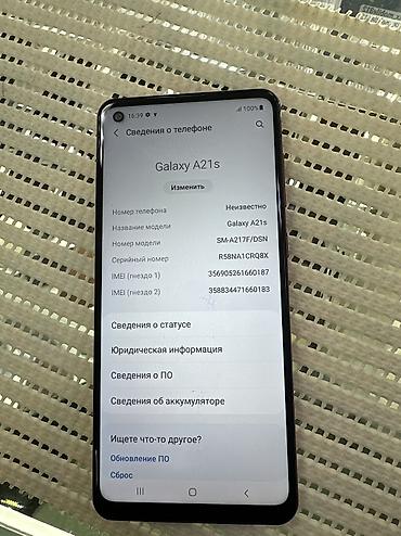 Samsung Galaxy A21S, Б/у, 32 ГБ, цвет - Фиолетовый, 1 SIM, 2 SIM