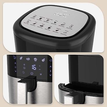 Тип: аэрогриль / аэрофритюрница — готовка с циркуляцией горячего воздуха, с минимальным количеством масла.