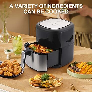 Хотите вкусные и хрустящие блюда без лишнего масла? Этот аэрогриль — отличный помощник на кухне. Объём 6 л, мощность 1500 Вт, температурный диапазон 80–200 °C и таймер до 60 минут позволяют готовить всё: от картофеля фри до курицы и овощей. Цифровая сенсорная панель делает управление простым и удобным, а антипригарная корзина — уборку после готовки лёгкой. Идеально для семьи из 2–4 человек.