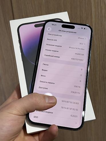 iPhone 14 Pro Max Purple • Эс тутуму: 256 ГБ • Батареясы: 95% 🔋 • Абалы: эң жакшы ✅ • Кепилдик: заводдук кемчиликке 1 ай, сервис тейлөөсү 1 жыл 🔹🔹🔹🔹🔹🔹🔹🔹🔹🔹🔹 IPhone 14 Pro Max 256 Purple - П...