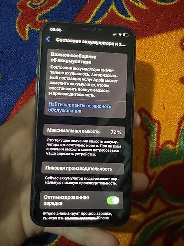- В разделе «Состояние аккумулятора» отображается сообщение о сниженной ёмкости; максимальная ёмкость 72%, оптимизированная зарядка включена