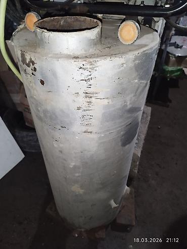 - Цилиндрический корпус из металла, ориентировочно Ø 40–50 см, высота около 1–1,2 м.