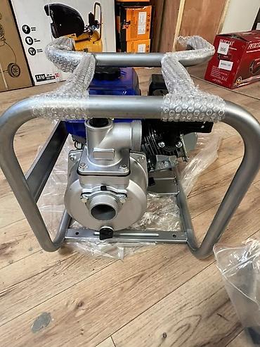 Дополнительно на одном из фото — электрический ручной инструмент (отдельный предмет). Если интересует только мотопомпа — ориентируйтесь на фотографии с синей силовой установкой и надписью “GASOLINE WATER PUMP”.