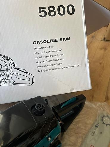 Бензопила с двигателем объемом 58 куб. см и мощностью 2.4 кВт. Максимальный диаметр резки составляет 20 дюймов. Скорость холостого хода достигает 2800 оборотов в минуту. Объем топливного бака — 550 мл. Используется двухтактная смесь масла и бензина в соотношении 1:25. Инструмент предназначен для выполнения различных задач по распиловке древесины, таких как обрезка сучьев, заготовка дров или строительные работы.