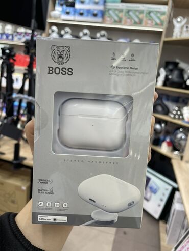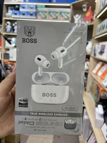 В комплекте: TWS наушники BOSS Air Pro2, зарядный кейс, кабель Type‑C (по изображению), документация/упаковка. Цвет: белый.