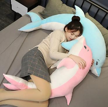 Мягкий, бархатистый на ощупь дельфин создаёт уют и отлично смотрится на кровати или диване. Подойдёт детям и взрослым для комфортного отдыха и милого акцента в интерьере.