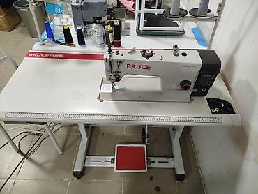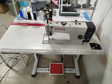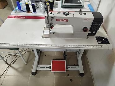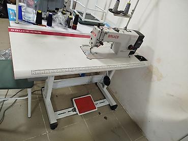 - Прямострочная машина с нижним продвижением, рабочая площадка на промышленном столе BRUCE.