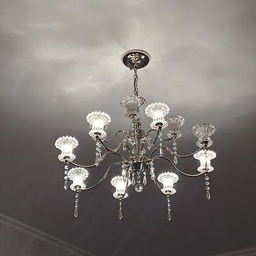 Комплектация: люстра с декоративными подвесками, потолочная чаша, цепь для подвеса.